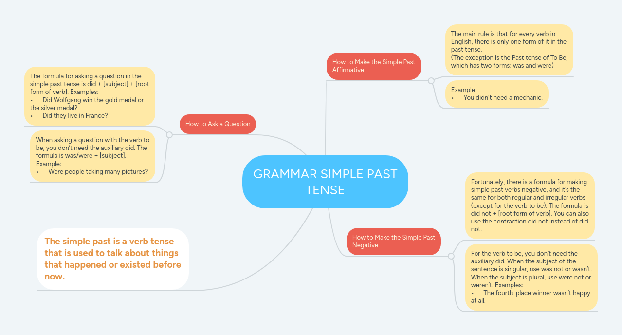 Mind Mapping Past Tense : Past Perfect Simple Mindmap : We did not find results for:. We did not find results for: Check spelling or type a new query. Maybe you would like to learn more about one of these?